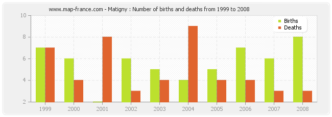 Matigny : births and deaths from 1999 to 2008
