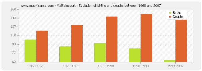 - Mattaincourt in 2007 : 4 births and 30 deaths