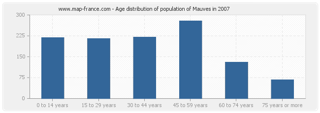 - Population of Mauves from 45 to 59 years : 278 inhabitants