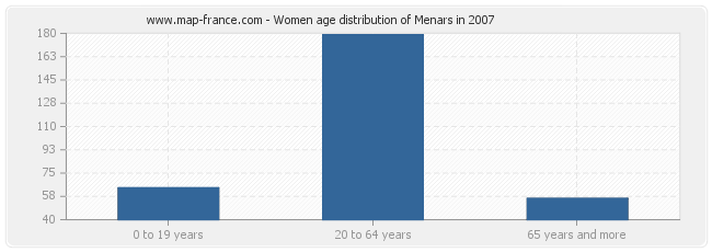 - Men inhabitants Menars in 2007 were 307 - Women inhabitants in 2007 were 299