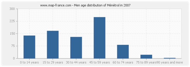 Men population distribution of Ménétrol by age in 2007 :