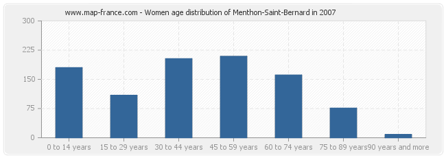 - Menthon-Saint-Bernard women inhabitants of 65 years and more : 175