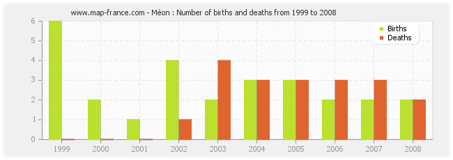 Méon : births and deaths from 1999 to 2008