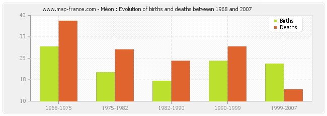 Méon : evolution of births and deaths from 1968 to 2007