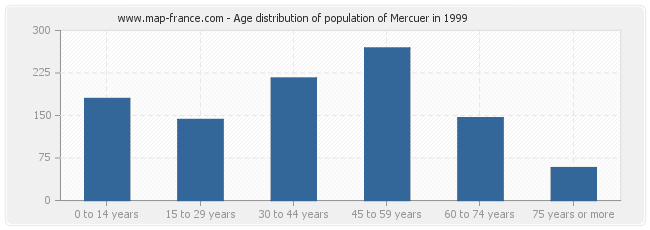- Population of Mercuer from 45 to 59 years : 269 inhabitants