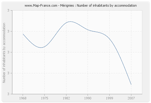 - Number of inhabitants per housing of Mérignies in 1968 : 2,89