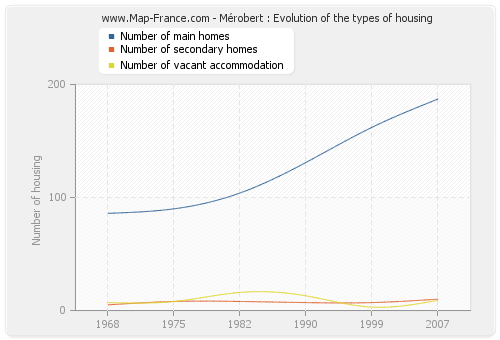 The number of housing of Mérobert was 206 in 2007, 172 in 1999, 151 in 1990, 128 in 1982, 106 in 1975 and 98 in 1968.