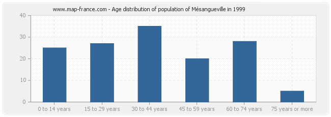 - Population of Mésangueville from 30 to 44 years : 35 inhabitants
