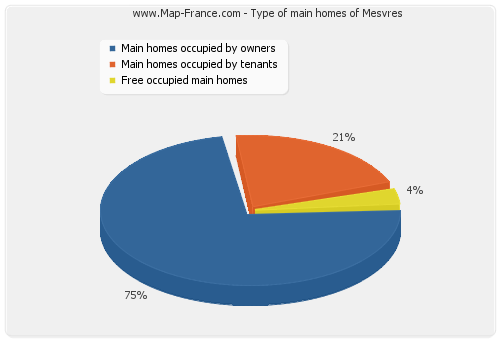 - Number of main homes of Mesvres occupied by owners : 279 - Number of main homes of Mesvres occupied by tenants : 79 - Number of main homes of Mesvres occupied free of charge : 13 |
