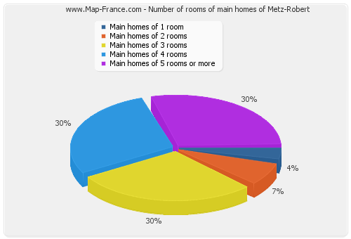 - Number of main homes of Metz-Robert of 1 room : 1 - Number of main homes of Metz-Robert of 2 rooms : 2 - Number of main homes of Metz-Robert of 3 rooms : 8 - Number of main homes of Metz-Robert of 4 rooms : 8 - Number of main homes of Metz-Robert of 5 rooms and more : 8 |