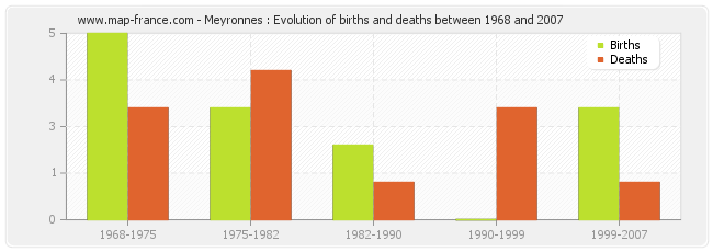 - Meyronnes in 2007 : 1 births and 0 deaths