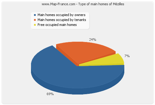 - Number of main homes of Mézilles occupied by owners : 187 - Number of main homes of Mézilles occupied by tenants : 65 - Number of main homes of Mézilles occupied free of charge : 20 |