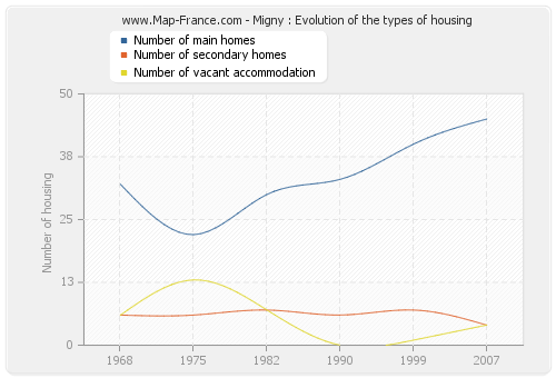 The number of housing of Migny was 53 in 2007, 48 in 1999, 39 in 1990, 44 in 1982, 41 in 1975 and 44 in 1968.