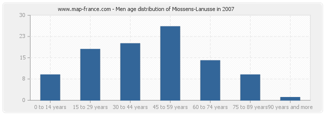 - Miossens-Lanusse men inhabitants from 45 to 59 years : 26
