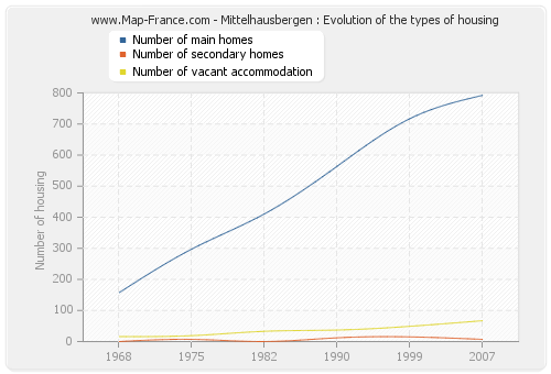 - Number of main homes of Mittelhausbergen in 2007 : 792