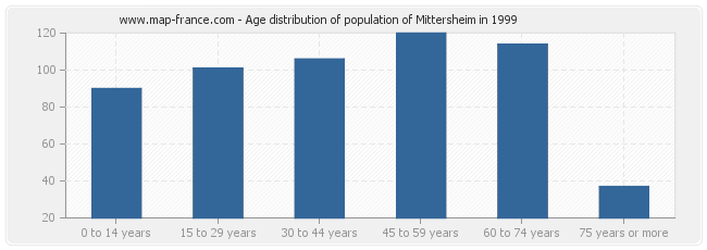 - Population of Mittersheim from 45 to 59 years : 120 inhabitants