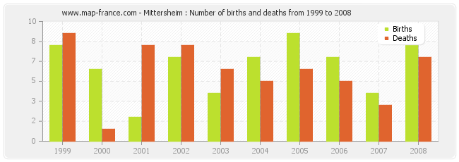 - Mittersheim in 2008 : 8 births and 7 deaths