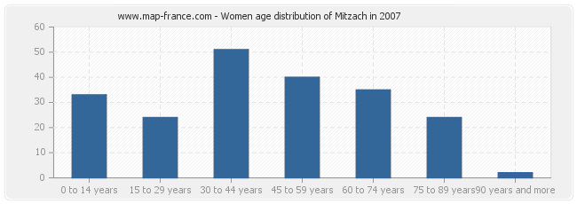 - Mitzach women inhabitants from 30 to 44 years : 51