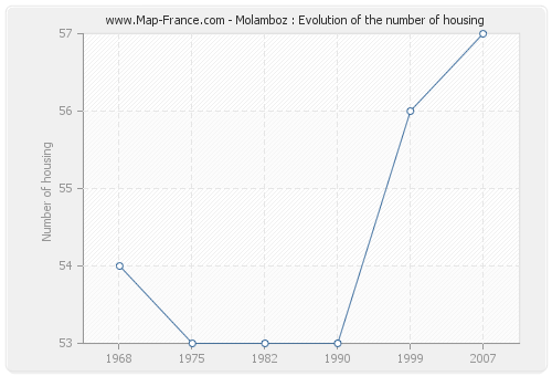 The number of housing of Molamboz was 57 in 2007, 56 in 1999, 53 in 1990, 53 in 1982, 53 in 1975 and 54 in 1968.