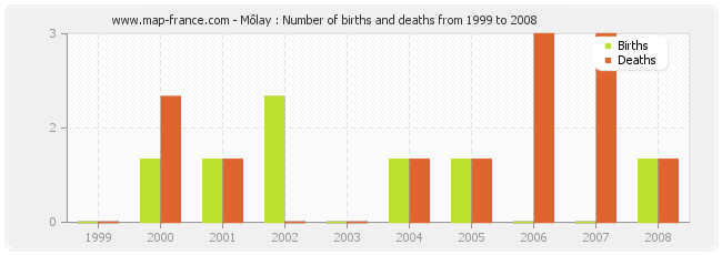 Population of Môlay was 120 inhabitants in 2007, 120 inhabitants in 1999, 117 inhabitants in 1990, 132 inhabitants in 1982, 173 inhabitants in 1975 and 163 inhabitants in 1968.