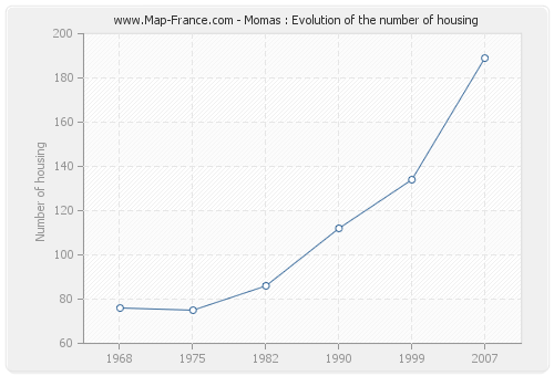 The number of housing of Momas was 189 in 2007, 134 in 1999, 112 in 1990, 86 in 1982, 75 in 1975 and 76 in 1968.