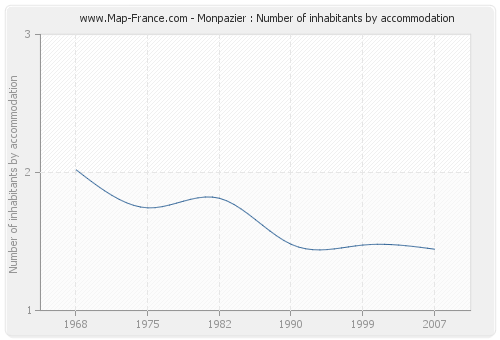 - Number of inhabitants per housing of Monpazier in 2007 : 1,44