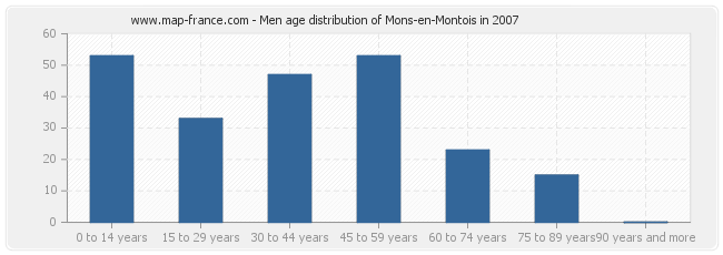 - Mons-en-Montois men inhabitants from 45 to 59 years : 53
