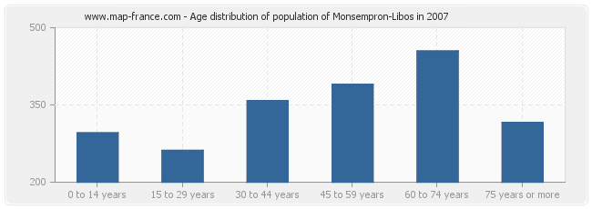 - Population of Monsempron-Libos from 60 to 74 years : 455 inhabitants