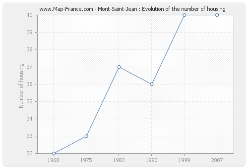 The number of housing of Mont-Saint-Jean was 40 in 2007, 40 in 1999, 36 in 1990, 37 in 1982, 33 in 1975 and 32 in 1968.