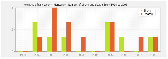 Population of Montbrun was 84 inhabitants in 2007, 72 inhabitants in 1999, 72 inhabitants in 1990, 72 inhabitants in 1982, 73 inhabitants in 1975 and 84 inhabitants in 1968.