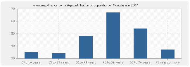 - Population of Montcléra from 30 to 44 years : 48 inhabitants