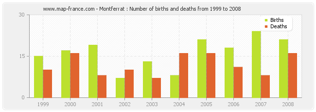 - Montferrat in 2008 : 21 births and 16 deaths