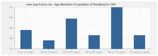 - Population of Montgibaud from 75 years or more : 33 inhabitants