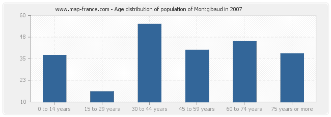 - Population of Montgibaud from 30 to 44 years : 55 inhabitants