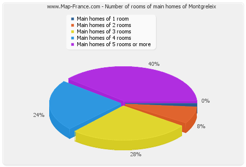 - Number of main homes of Montgreleix of 1 room : 0 - Number of main homes of Montgreleix of 2 rooms : 2 - Number of main homes of Montgreleix of 3 rooms : 7 - Number of main homes of Montgreleix of 4 rooms : 7 - Number of main homes of Montgreleix of 5 rooms and more : 10 |