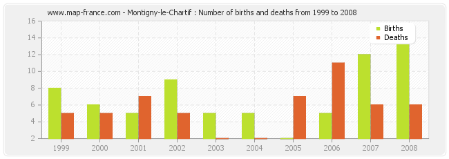 Montigny-le-Chartif : births and deaths from 1999 to 2008