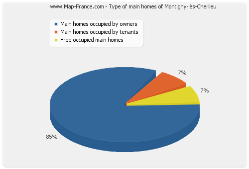 - Number of main homes of Montigny-lès-Cherlieu occupied by owners : 70 - Number of main homes of Montigny-lès-Cherlieu occupied by tenants : 6 - Number of main homes of Montigny-lès-Cherlieu occupied free of charge : 6 |