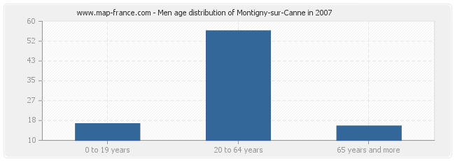 - Montigny-sur-Canne men inhabitants from 20 to 64 years : 56