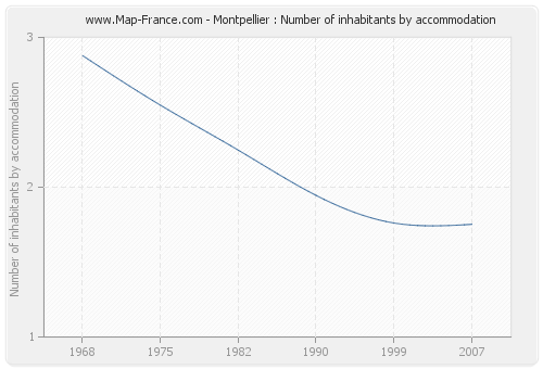 - Number of inhabitants per housing of Montpellier in 2007 : 1,75