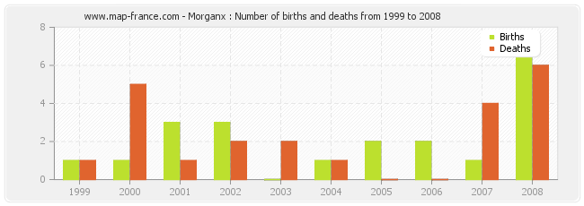 - Men inhabitants Morganx in 2007 were 88 - Women inhabitants in 2007 were 87