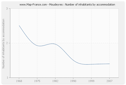 - Number of inhabitants per housing of Moudeyres in 2007 : 1,40