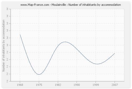 - Number of inhabitants per housing of Moulainville in 2007 : 2,39