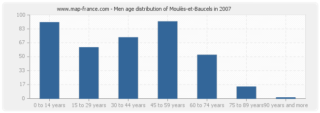 - Moulès-et-Baucels men inhabitants from 0 to 14 years : 91