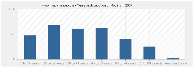 - Moulins men inhabitants from 15 to 29 years : 2 036