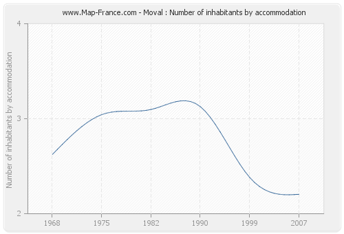 The number of inhabitants of Moval per housing was 2,20 in 2007.