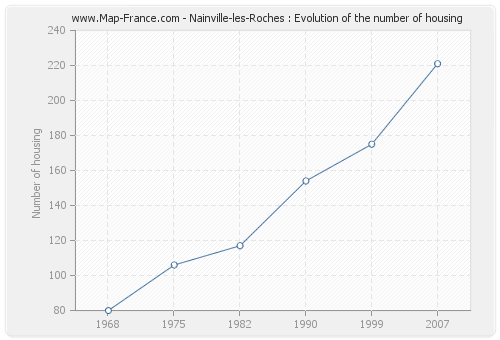 The number of housing of Nainville-les-Roches was 221 in 2007, 175 in 1999, 154 in 1990, 117 in 1982, 106 in 1975 and 80 in 1968.