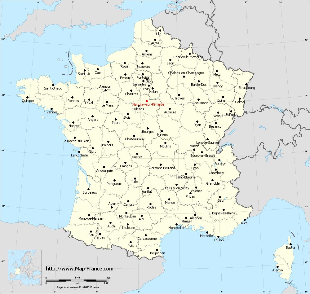 You will find the location of Nancray-sur-Rimarde on the map of France of regions in Lambert 93 coordinates. The town of Nancray-sur-Rimarde is located in the department of Loiret of the french region Centre.