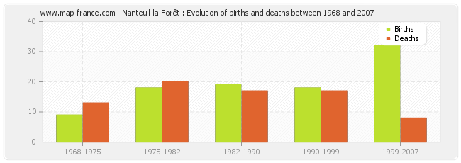 Nanteuil-la-Forêt : evolution of births and deaths from 1968 to 2007