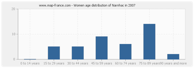 - Narnhac women inhabitants from 75 to 90 years : 14