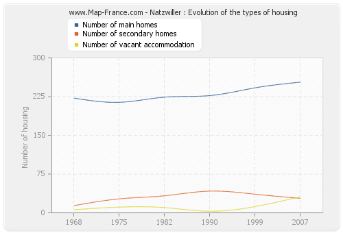 The number of housing of Natzwiller was 311 in 2007, 290 in 1999, 272 in 1990, 267 in 1982, 252 in 1975 and 242 in 1968.